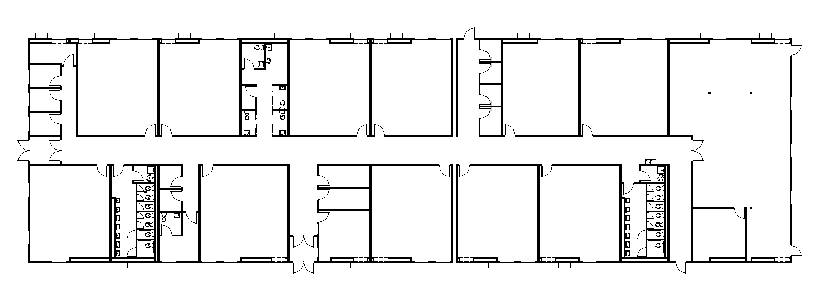 • Student restroom banks placed centrally along corridors for easy access.
