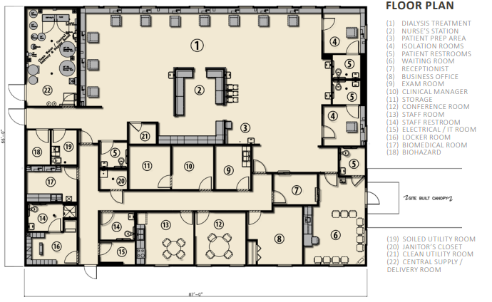 The dialysis center is located nearly 70 miles from any major city. When the existing dialysis facility was closed due to structural issues, the reservation was left lacking renal treatment options. Both the remote location and the accelerated time line pointed to modular construction as the optimal solution.