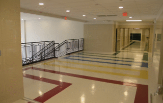 As with all of their facilities, the design, finishes and specifications needed to reflect the schools’ commitment to excellence, quality, and sustainability. The building is framed with high recycled content steel with cementitious sub-floors poured on-site. Ceramic and quarry tile wainscot clads the walls in hallways and classrooms with full-height ceramic tiling in the restrooms. A reflective white “cool roof” membrane covers the roof and improves energy efficiency. The highly efficient HVAC system installed features ERV units to recover energy, CO2 sensors, and HCFC-free refrigerants to ensure healthy indoor air. Occupancy sensors are incorporated into the lighting system to reduce energy waste, as well.