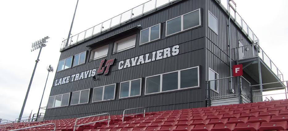 To culminate the renovation, the high school needed a new press box with space for TV and radio broadcasters, as well as space for the home and visiting coaching staff. This new press box also needed to complement the aesthetic appeal of the rest of the stadium.