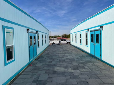Six uniquely purposed turquoise modular buildings were delivered to support the operations, development, and attractions of an Adventure Park.